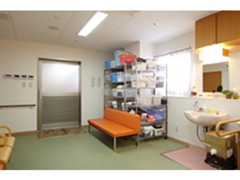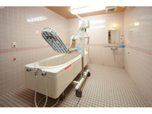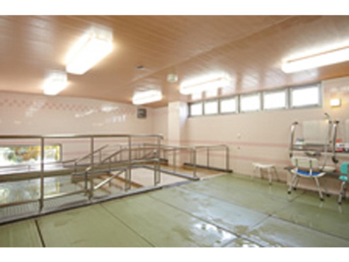 1階入り口はオートロックでセキュリティーも万全。陽の差し込む1階食堂の外には広い庭が広がります。天気の良い日はお庭で散歩して頂けます。安全の為防水の畳を敷いてある浴室では週に1度、天然温泉をお楽しみ頂けます。