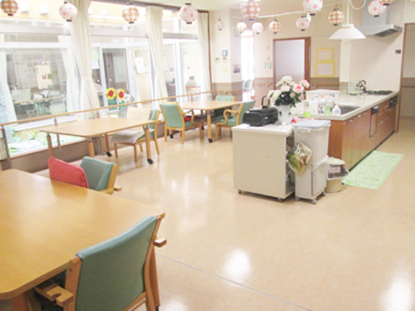 相談室、生きがいスペース、機能回復コーナー、特別浴室(機械浴、個浴)、一般浴室(個浴)、 一般浴室(共同浴)、脱衣室兼洗濯室、ダイニングコーナー、看護師室兼健康管理室、会議室
