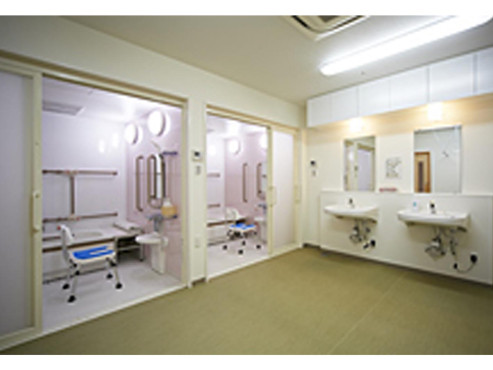 共用エリアに一人で入れるユニットバスがある施設