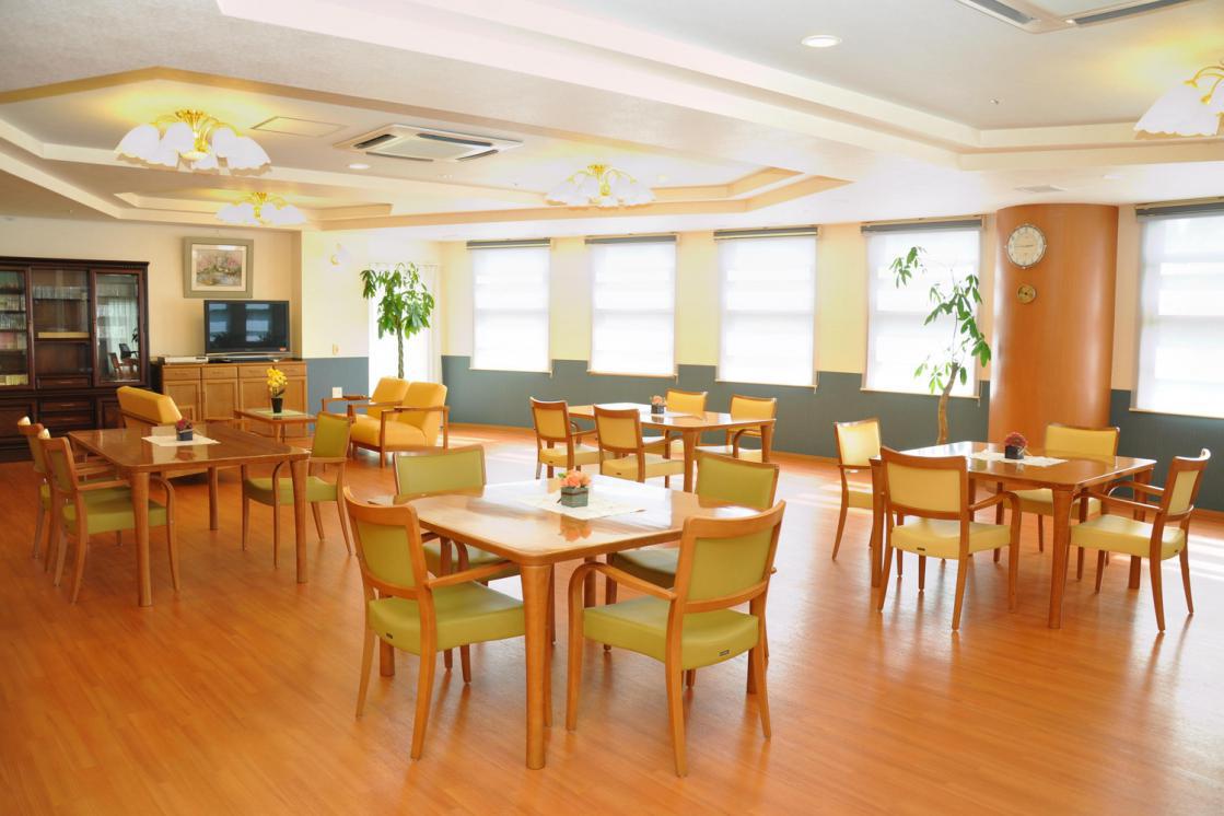 ウッドデッキ、ダイニングルーム兼機能訓練室、ビューティサロン(各種の外部サービス〔利用者実費負担〕を受けるための部屋)、ファミリールーム、健康管理室、洗濯コーナー、浴室