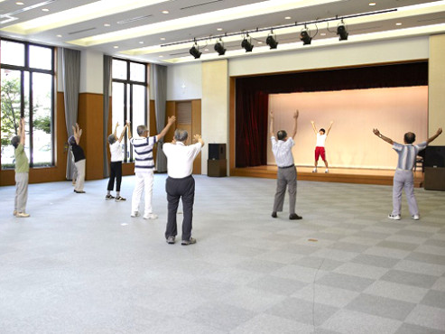 アクティブホールでの体操に参加。すっかり朝の習慣となっています。