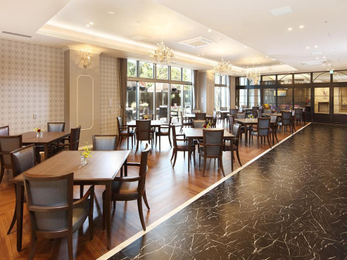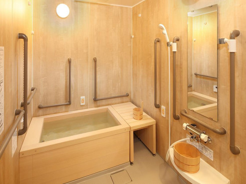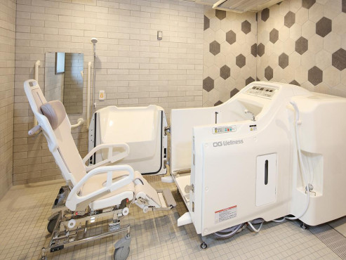 ダイニングルーム兼機能訓練室、ティールーム、ビューティサロン(各種の外部サービス〔利用者実費負担〕を受けるための部屋)、ファミリールーム、健康管理室兼事務室、洗濯コーナー、浴室