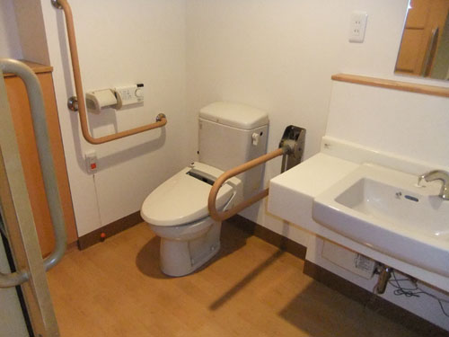 トイレ、洗面所、エアコン、収納、電話回線、玄関引き戸扉、玄関ディスプレイ、クローゼット、フラットフロア、ナースコール、防災設備、空調換気設備、照明器具、エアコン、電動介護ベッド、カーテン(防火)、寝具一式、温水洗浄機能付きトイレ、車椅子対応トイレ、洗面化粧台、物干しベランダ、(一部居室:台所、浴室、床暖房、洗濯パン)