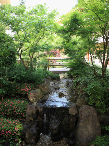 陶芸工房やカフェなどの施設を結ぶように小川が流れ、さわやかな風が通り抜ける「風のガーデン」。