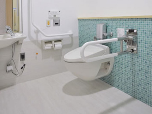 車いす対応トイレ、エアコン、ミニキッチン(IHコンロ)、照明、洗面台、収納、机椅子、給湯、温水、カーテン、ナースコール、テレビ回線
