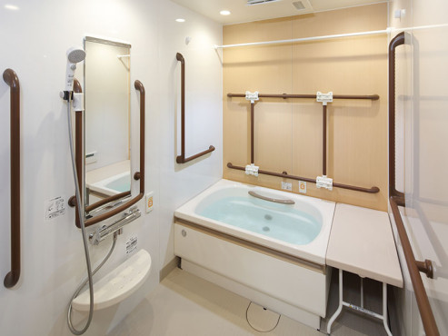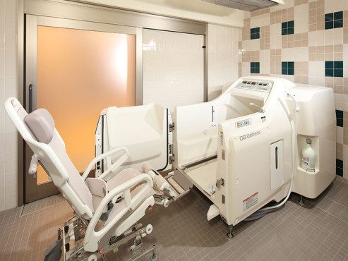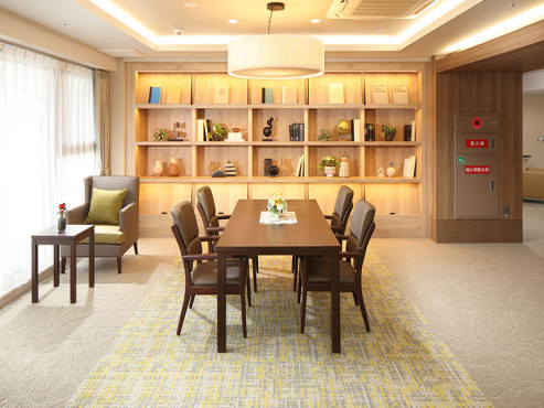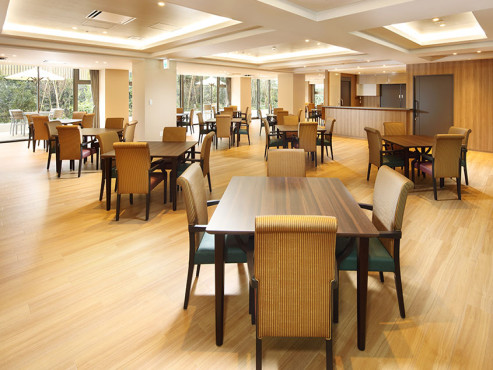 ダイニングルーム、ティールーム、ビューティサロン(各種の外部サービス〔利用者実費負担〕を受けるための部屋)、ファミリールーム、健康管理室兼事務室、洗濯コーナー、浴室