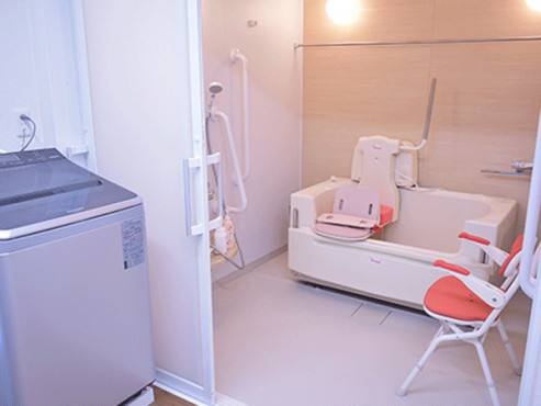 共用エリアに一人で入れるユニットバスがある施設