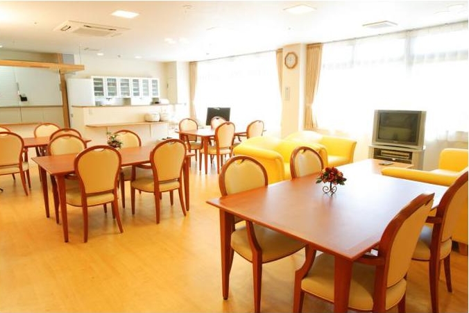 リビングルーム兼食堂兼機能訓練室は、各フロアごとのテーマカラーに彩られています。お食事だけでなくご入居者様同士の憩いの場にもなっております。続きを読む -