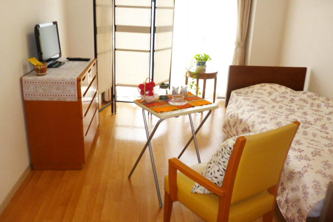 お部屋は全室個室で、車椅子でも生活しやすいバリアフリー設計。トイレ・エアコン・チェスト・介護ベッド・24時間対応のナースコールを設置しております。ご自宅より慣れ親しんだ家具をお持ち込みいただくことも可能です。(※すべての居室にない設備もございます。普段、ご自宅でご利用のものをお持ちいただいてかまいませんが、ガスストーブ・コンロ・ろうそく等、火災・事故の危険があるものの持ち込みは基本的にお断りさせていただいております。)