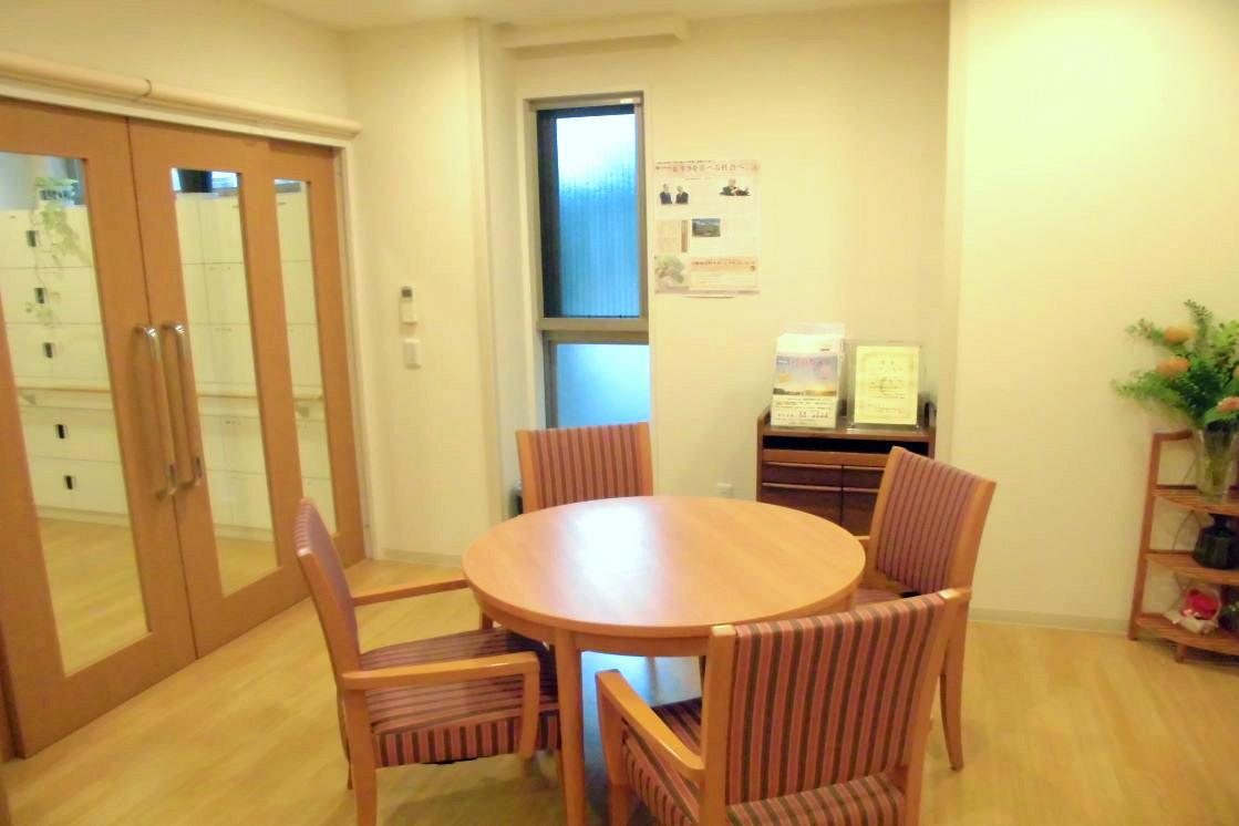1Fエントランスホール横にラウンジをご用意しております。ご入居者様とご家族様が、お茶を一緒に飲みながらお話されたり、一緒の時間を過ごしていただける憩いのスペースとなっております。