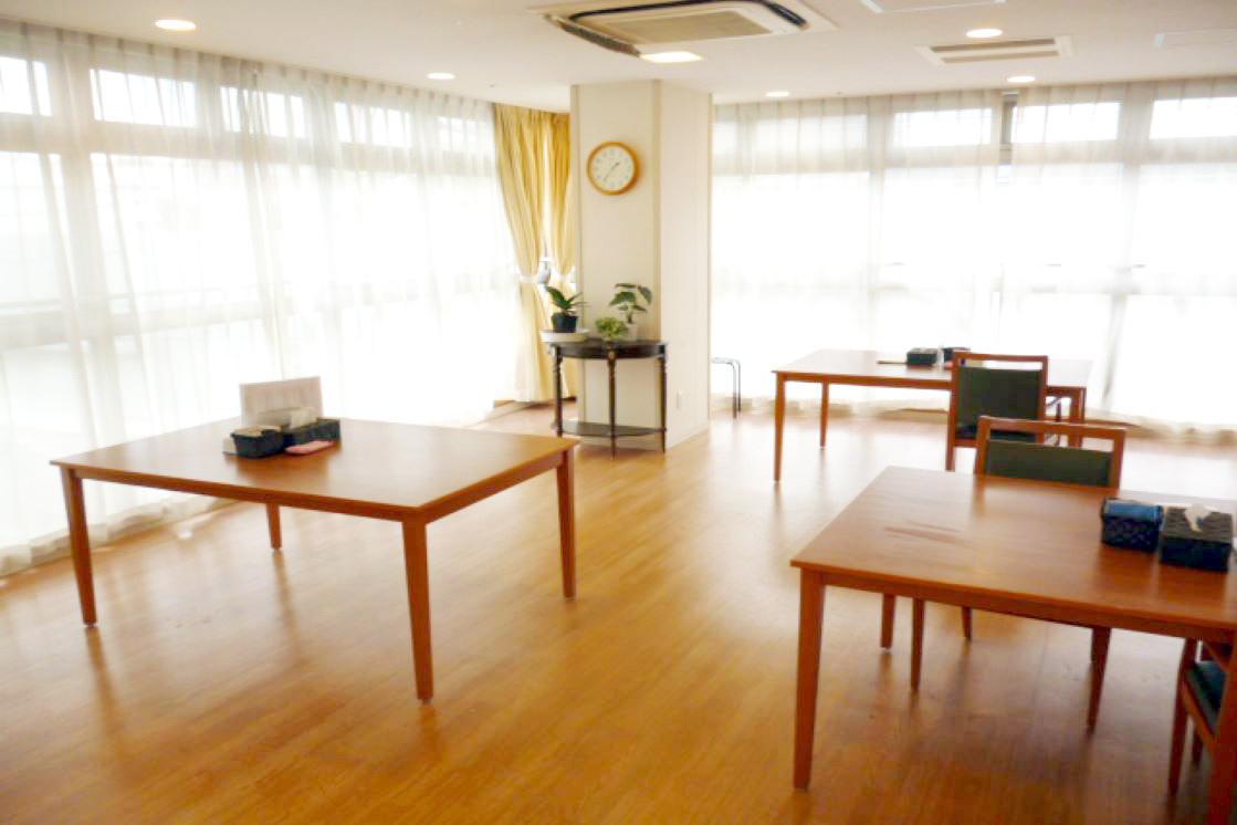 お食事やアクティビティ、リハビリ体操等を行う開放的なリビングを各階に設けています。南側に面したリビングは日差しが差し込み、明るくゆったりした空間となっています。