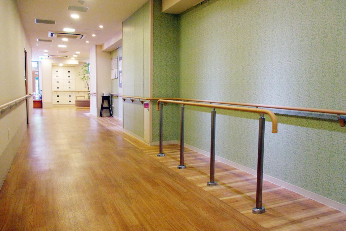 1階の廊下に手すりを設置しリハビリに活用できるスペースにしています。歩行訓練などにご利用いただけます。
