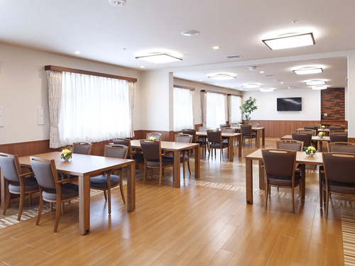 エントランスホール、リビング&ダイニング(食堂)※1、個人浴室、特別浴室、ヘルパーステーション、健康管理室、ファミリールーム、ヘアーサロン(理美容室)、ランドリー、喫煙室 ※1食事だけでなくイベント・レクリエーション・機能訓練等、日常生活上多目的に使用。