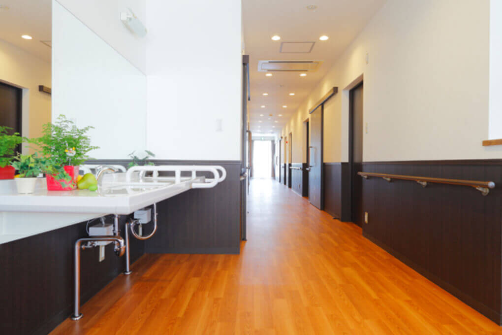 車いすの方でも安心してすれ違える広々とした廊下。続きを読む