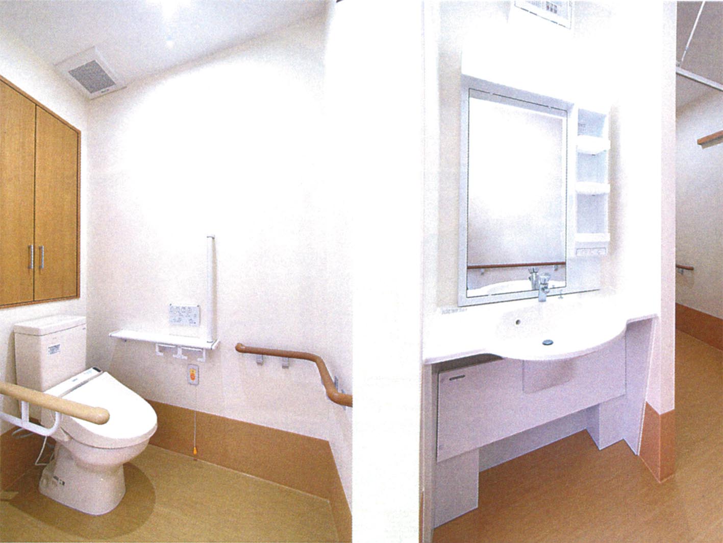 洗面カウンター・化粧鏡・トイレ・トイレ手すり・クロゼット・ナースコール・自動火災報知設備・スプリンクラー・コンセント・TVアンテナ口・非常放送設備・24時間換気設備・エアコン・照明