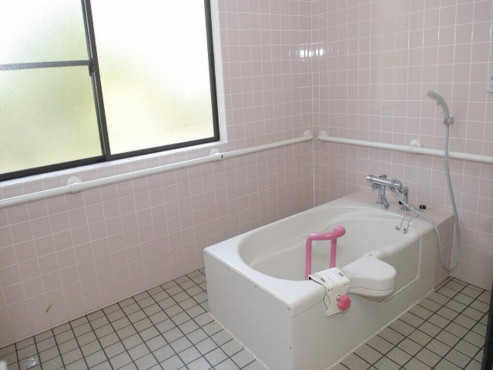 白を基調とした清潔な空間の浴室は、お1人では入浴が困難な方もしっかりサポートをしながらご入浴いただけます。