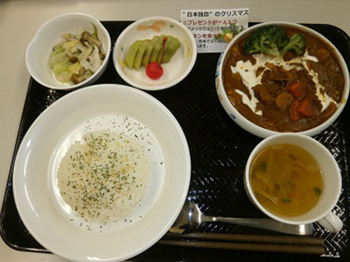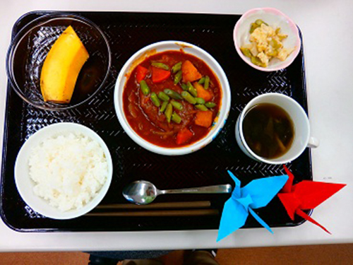 リクエストメニューは「煮込みハンバーグ」でした。ソースの味がとっても良かったと評判でした。来月は何かな♪