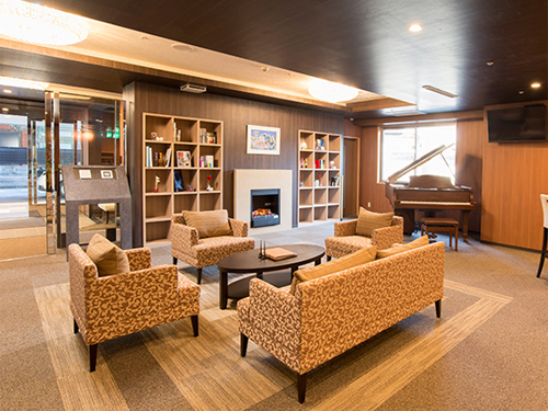 ホテルを思わせる洗練された内装のラウンジは暮らしを彩り、ご友人やご入居者様同士の交流に花を添えます。続きを読む -