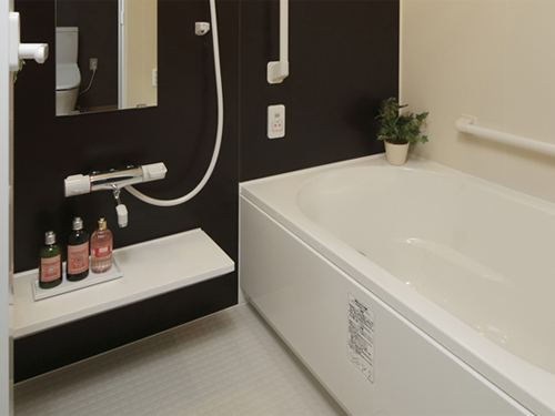 手すりを設置するなど、安全性に配慮した浴室です。ゆったりとした空間でリラックスしながら入浴タイムを楽しんでいただけます。