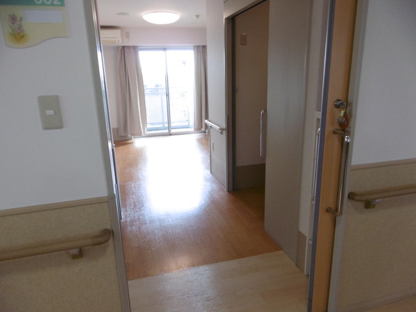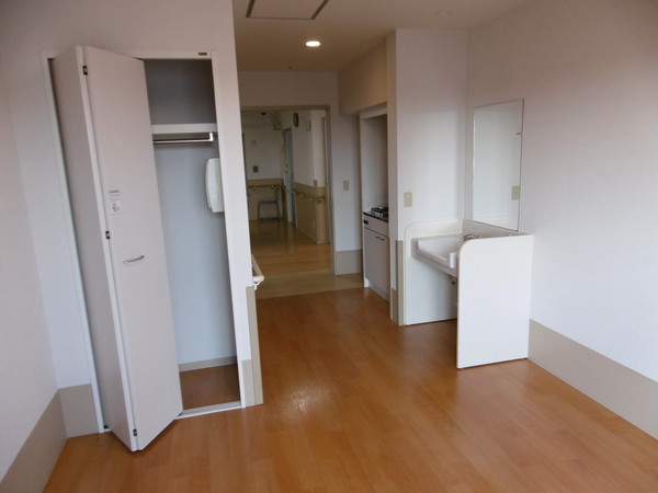 地上波アンテナ、ミニキッチン、クローゼット、手すり、フローリング、ナースコール、照明器具、エアコン、温水洗浄機能付きトイレ、洗面化粧台、フラットフロア、防災設備、空調換気設備