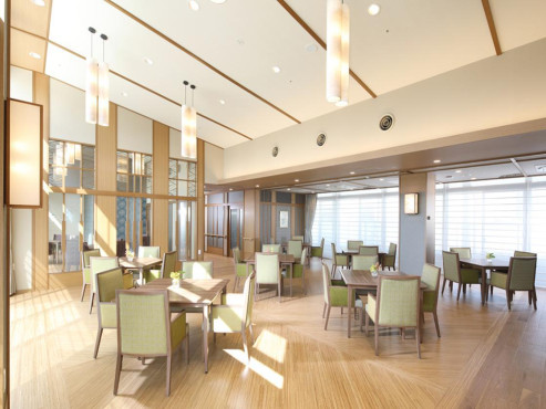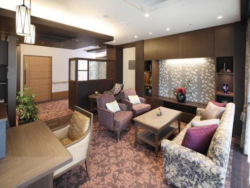 コミュニティルーム、ダイニングルーム、ビューティサロン(各種の外部サービス〔利用者実費負担〕を受けるための部屋)、ファミリールーム、屋上庭園、機能訓練室、健康管理室兼事務室、浴室