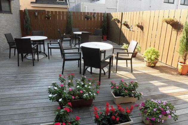 ウッドデッキでは季節に合わせた花を鑑賞することができます。ご家族様が来訪された際にこちらでご入居者様と過ごされている様子をよくお見かけします。