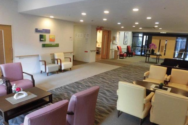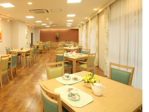 ダイニングルーム兼機能訓練室、ティールーム、ビューティサロン(各種の外部サービス〔利用者実費負担〕を受けるための部屋)、ファミリールーム、健康管理室兼事務室、浴室