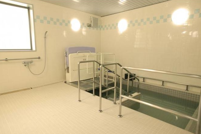 トイレ、リビングルーム兼食堂兼機能訓練室、健康管理室兼事務室、洗濯室、浴室