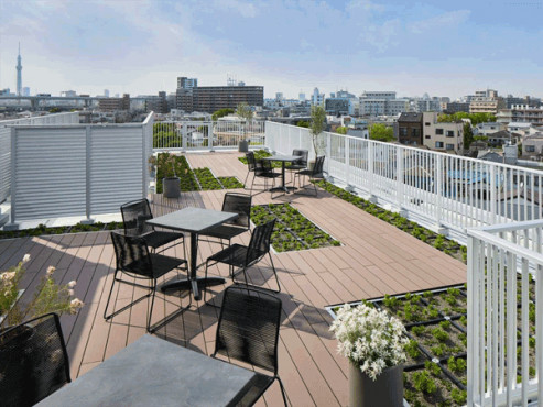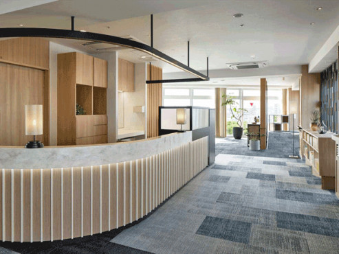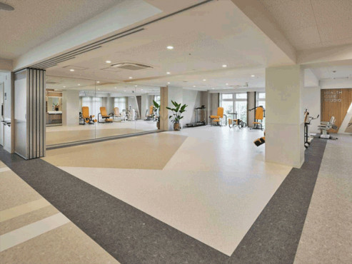 カフェ、テラス、ロビー、ウッドデッキ、エレベーター、ナースコール、スタッフルーム、リビングルーム、トレーニングルーム、一般浴室、中庭、介護浴室、個人用浴室、健康管理・相談室、共用トイレ、厨房室、地域交流スペース、多目的室、マッサージ室、リハビリ室、リネン室、寝台用エレベーター、放送設備、更衣室、機械浴室、歯科治療室、汚物処理室、洗濯室、特別室、玄関ホール、理美容室、異常監視システム、自販機、談話室、車椅子用トイレ、避難設備、防災設備、風除室、ダイニングルーム(食堂)、駐車場、駐輪場 ※各階により設備が異なります