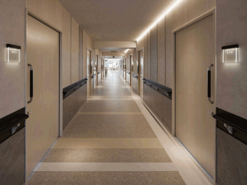テラス、テレビ、トイレ、エアコン、クローゼット、ナースコール、フローリング、ミニキッチン、ベッドサイドキャビネット、wi-fi、化粧洗面台、収納棚、地上波アンテナ、寝具一式、引き戸式ドア(居室内)、浴室、温水洗浄機能付きトイレ、照明器具、睡眠センサー、空気清浄機、車椅子対応トイレ、車椅子対応洗面化粧台、避難設備、鏡、防火カーテン、防災設備、電動介護ベッド ※各階により設備が異なります
