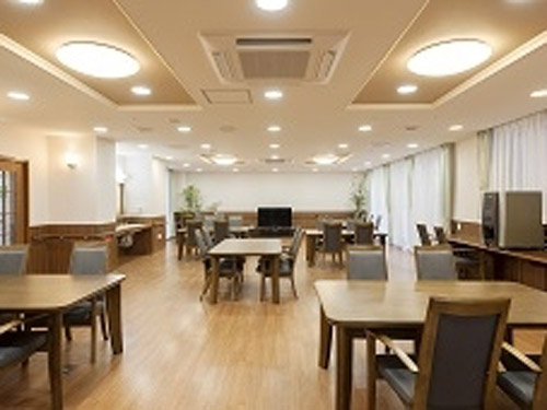 ゆったりとした食堂では、お好きな時間に来て頂きゆっくりとお食事をしていただくことが出来ます。(同タイプの他のそんぽの家S)続きを読む -