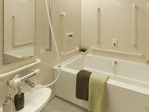 手摺りが設置されており、滑りにくい素材の床等、安全に入浴ができます。好きな時間にご自分のペースでゆっくりと入浴出来ます。