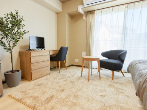 居室は全て個室で、キッチン、浴室付きです。内装や家具は和モダンなデザインを採用。