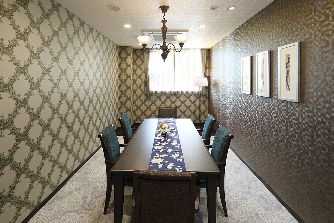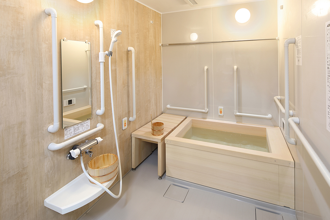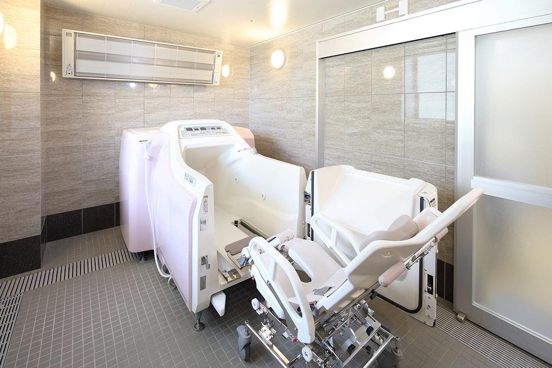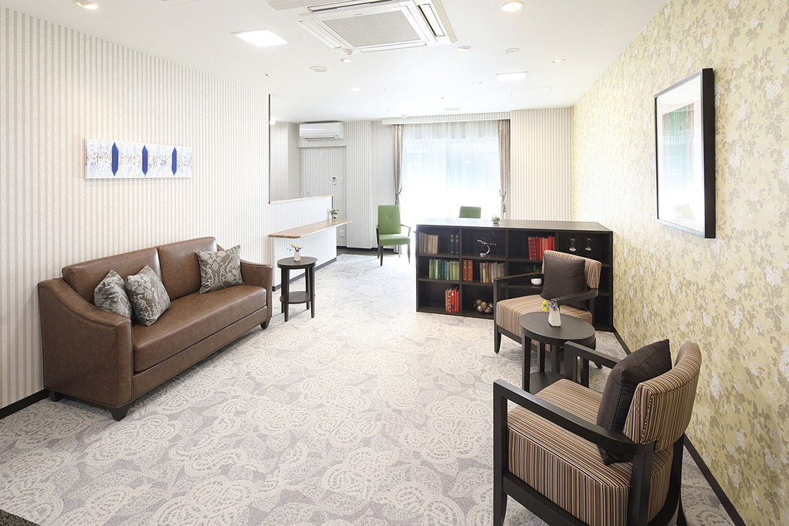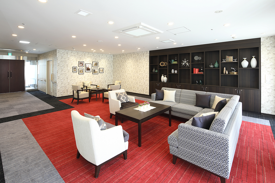ダイニングルーム、ティールーム、ビューティサロン(各種の外部サービス〔利用者実費負担〕を受けるための部屋)、ファミリールーム、機能訓練室、健康管理室兼事務室、洗濯コーナー、浴室