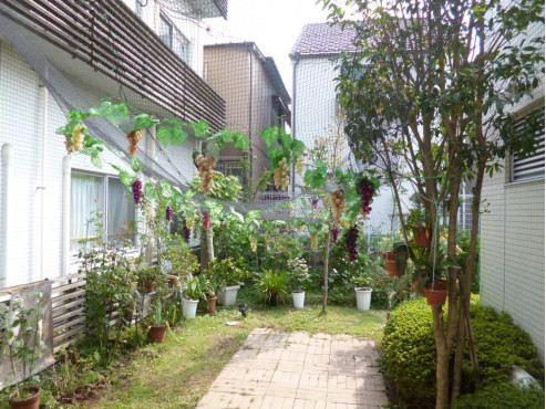 緑溢れる中庭。毎年秋にはぶどう狩りを行っています。緑溢れるホームとなっています。