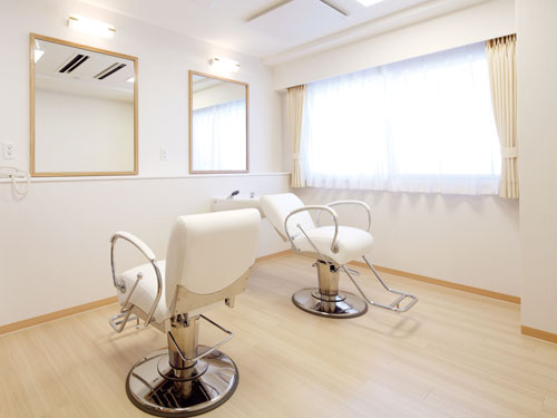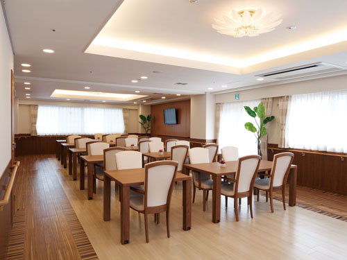 エントランスホール、リビング&ダイニング(食堂)※1、機能訓練室※2、ヘルパーステーション、健康管理室、特別浴室、個別浴室、ヘアーサロン(理美容室)、応接室、ファミリールーム、化粧室、喫煙室、駐車場 ※1食事だけでなくイベント・レクリエーション等、日常生活上多目的に使用。 ※2機能訓練だけでなく多目的に使用。