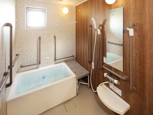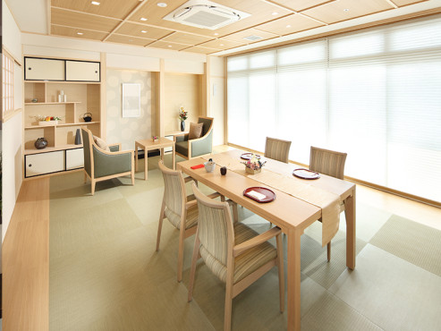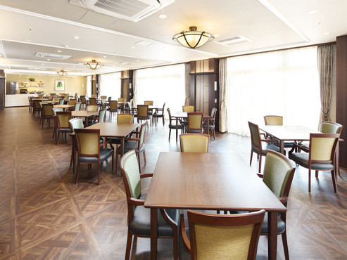 ウッドデッキテラス、ダイニングルーム、ティールーム、ビューティサロン(各種の外部サービス〔利用者実費負担〕を受けるための部屋)、ファミリールーム、機能訓練室、健康管理室兼事務室、浴室