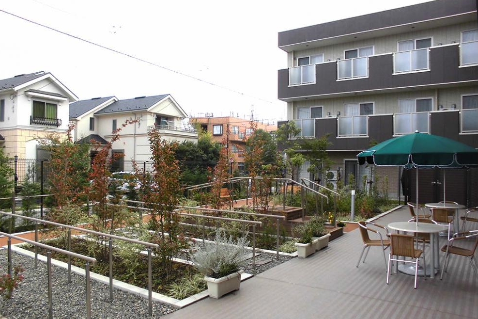 階段や平行棒を利用しリハビリとして活用したり、植物を眺めながらお茶をされたり、外の風が心地よく感じる空間です。続きを読む