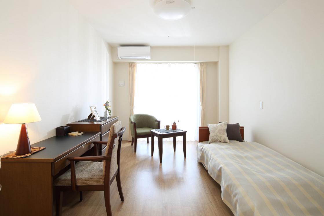 広めでおくつろぎいただけるお部屋です。全室個室でプライバシーを守り、またバリアフリーの配慮がされています。お好みの家具を持ち込んでいただくことができます。(※普段、ご自宅でご利用のものをお持ちいただいてかまいませんが、ガスストーブ・コンロ・ろうそく等、火災・事故の危険があるものの持ち込みは基本的にお断りさせていただいております。)
