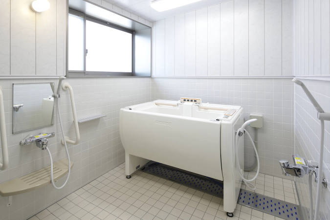 食堂、フロント、メールボックス、相談室、ホール、脱衣所、洗濯室、個浴室、機械浴室、汚物処理室、駐車場、駐輪場、バイク置き場、エレベーター