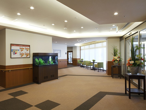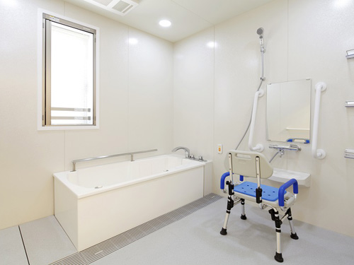 エントランスホール、リビング&ダイニング(食堂)※1、機能訓練室※2、個人浴室、特別浴室、ヘルパーステーション、健康管理室、ファミリールーム、ヘアーサロン(理美容室)、ランドリー、喫煙室 ※1食事だけでなくイベント・レクリエーション等、日常生活上多目的に使用。 ※2機能訓練だけでなく多目的に使用。