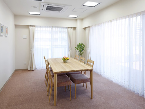 共有スペースは、お客様同士や来訪されたご家族との会話を楽しんだり、ゆったりとくつろいだりして頂ける設備やスペースを