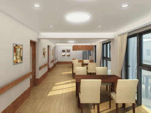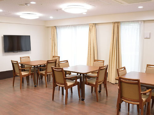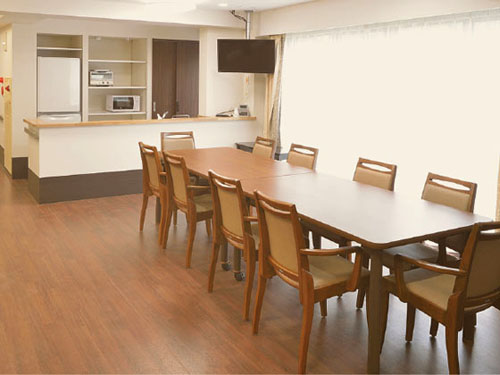 ローズ・ガーデン深川の各フロアの造りは1フロア10室(2階9部屋、5階5部屋)13.5平方メートル~15.9平方メートルの広さとなり、居室と談話スペースを設けています。プライベートを守りつつ、静かに自立した生活空間を提供致します。居室内にはトイレ、洗面台、チェスト、電動ベットが完備され快適にお過ごしになられます。南向きに配置した談話コーナーでは川面を眼下に、ご入居者同士やご家族と歓談しながら、ゆったりとした時間をお過ごしになれます。