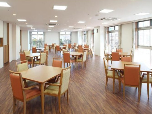 ダイニングルーム兼機能訓練室、ビューティサロン(各種の外部サービス〔利用者実費負担〕を受けるための部屋)、ファミリールーム、健康管理室兼事務室、洗濯コーナー、談話スペース、浴室