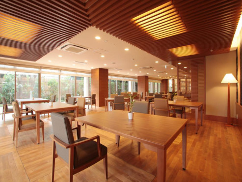 コミュニティルーム、ダイニングルーム、ビューティサロン(各種の外部サービス〔利用者実費負担〕を受けるための部屋)、ファミリールーム、機能訓練室、健康管理室兼事務室、浴室