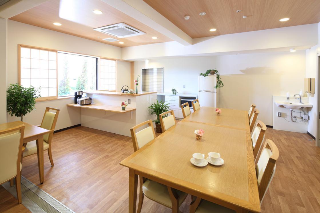 トイレ、リビングルーム兼食堂兼機能訓練室、健康管理室兼事務室、洗濯室、浴室