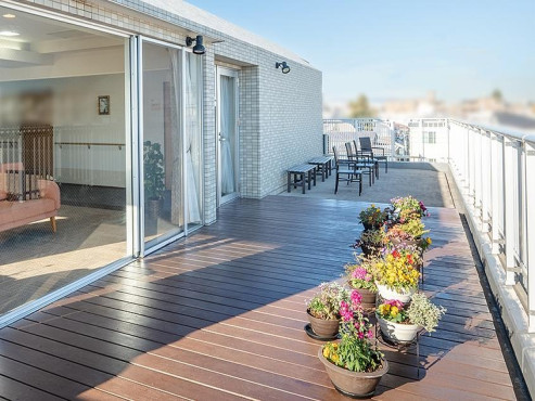 4階のティールームです。テラスもありとても眺めがよく、ご入居者様、ご家族様にも大変人気のスペースです。続きを読む -