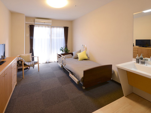 お好きな家具や使い慣れた家具をお持ち込みいただき、ご自宅での生活により近い環境でお過ごしいただけます。エアコン、洗面台(鏡付)、ウォシュレット付トイレ、室内照明、介護用電動ベッド、カーテンは備え付けです。続きを読む
