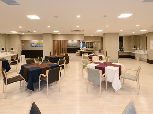 ご入居者様にお食事を召し上がっていただくスペースです。また、レクリエーションやおくつろぎの場としてご利用いただけます。続きを読む -