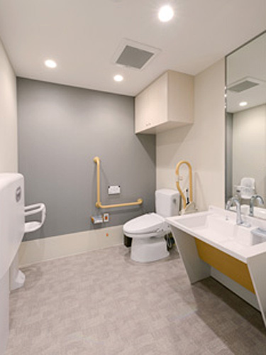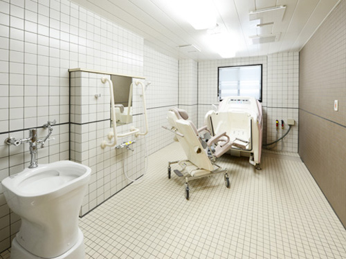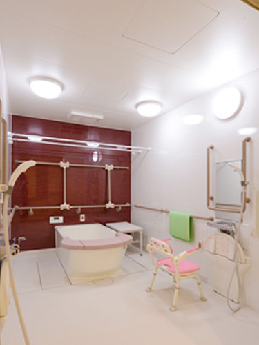 浴室は各フロアに2つずつあり、左右どちらでも入りやすいように移動できる可動浴槽タイプ。必要に応じてスタッフの見守りまたは介助を行います。続きを読む -